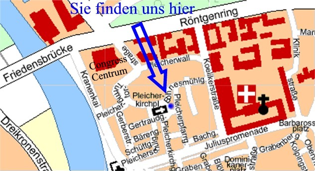 Zur Anlieferung oder Abholung Ihrer Objekte ist es auch möglich direkt an den Laden heranzufahren. Das Parken auf dem Pleicherkirchplatz ist leider nicht gestattet. |